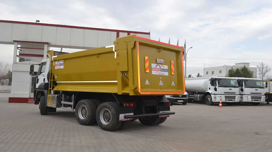 Kamyon Üstü Damper güçlendirilmiş hidrolik silindir yapısı, patentli üst yapı tasarımı, şasi ve üst yapısında kullanılan yüksek mukavemetli çelik yapı sayesinde müşterilerine daha uzun ömürlü kullanım avantajı sunarak, bakım masrafını en aza indirir.